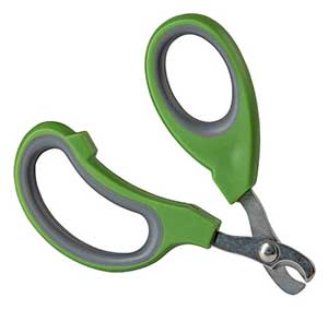 Mit einer Krallenschere- oder Zange die einzelne Kralle abklipsen. Dabei sollte man immer ein Stück (ca. 3 – 5 mm) vor dem Blutgefäß schneiden und niemals genau an der Stelle.